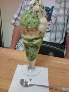 私たちはお昼を食べていたので、たぬぽんは、抹茶パフェ