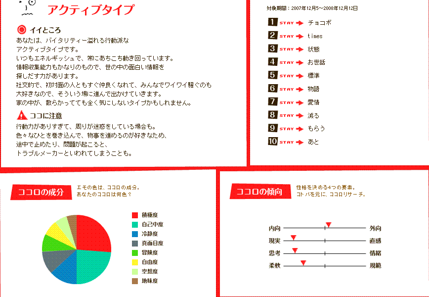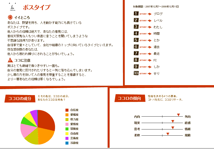 【ステータス】力、持久力はあるかないか、判断力が最高。感受性が標準(1184)
