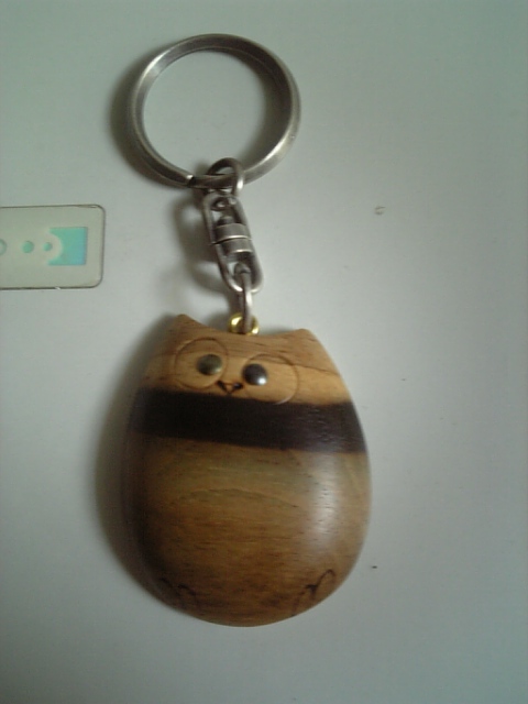 私のこのキーホは木製なの、縞は柿の渋でこういう風に