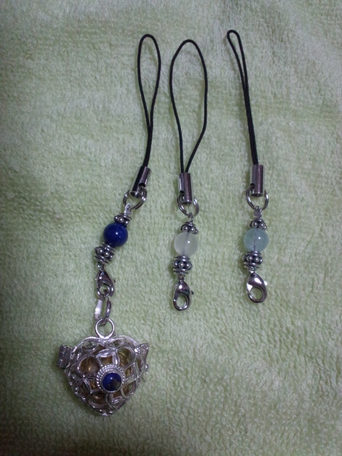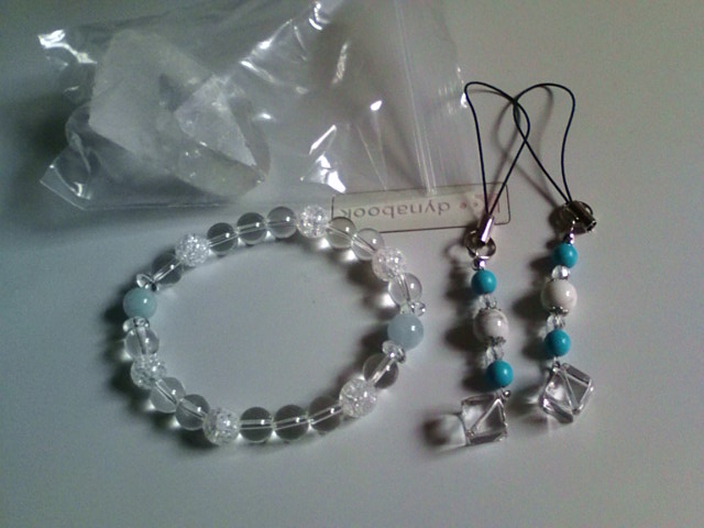 あと、携帯ストラップ(ハウライトとターコイズ)が先端の