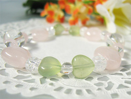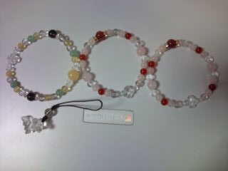 右は、それと一緒に買ったカーネリアンとローズクオーツと水晶のブレスレット2点は