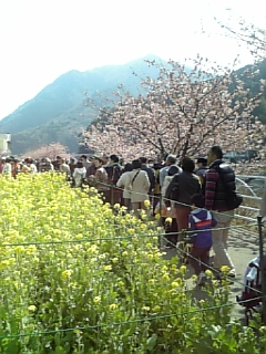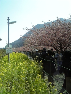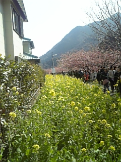 菜の花も桜も満開です、ただ、、風がとても強いのです。