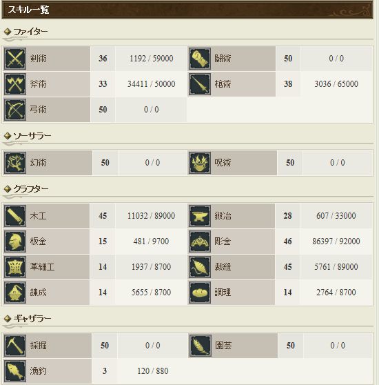 | 戦士 | 斧術士レベル30以上 | 剣術士レベル15以上 | 斧術士 | 剣術士/格闘士 |